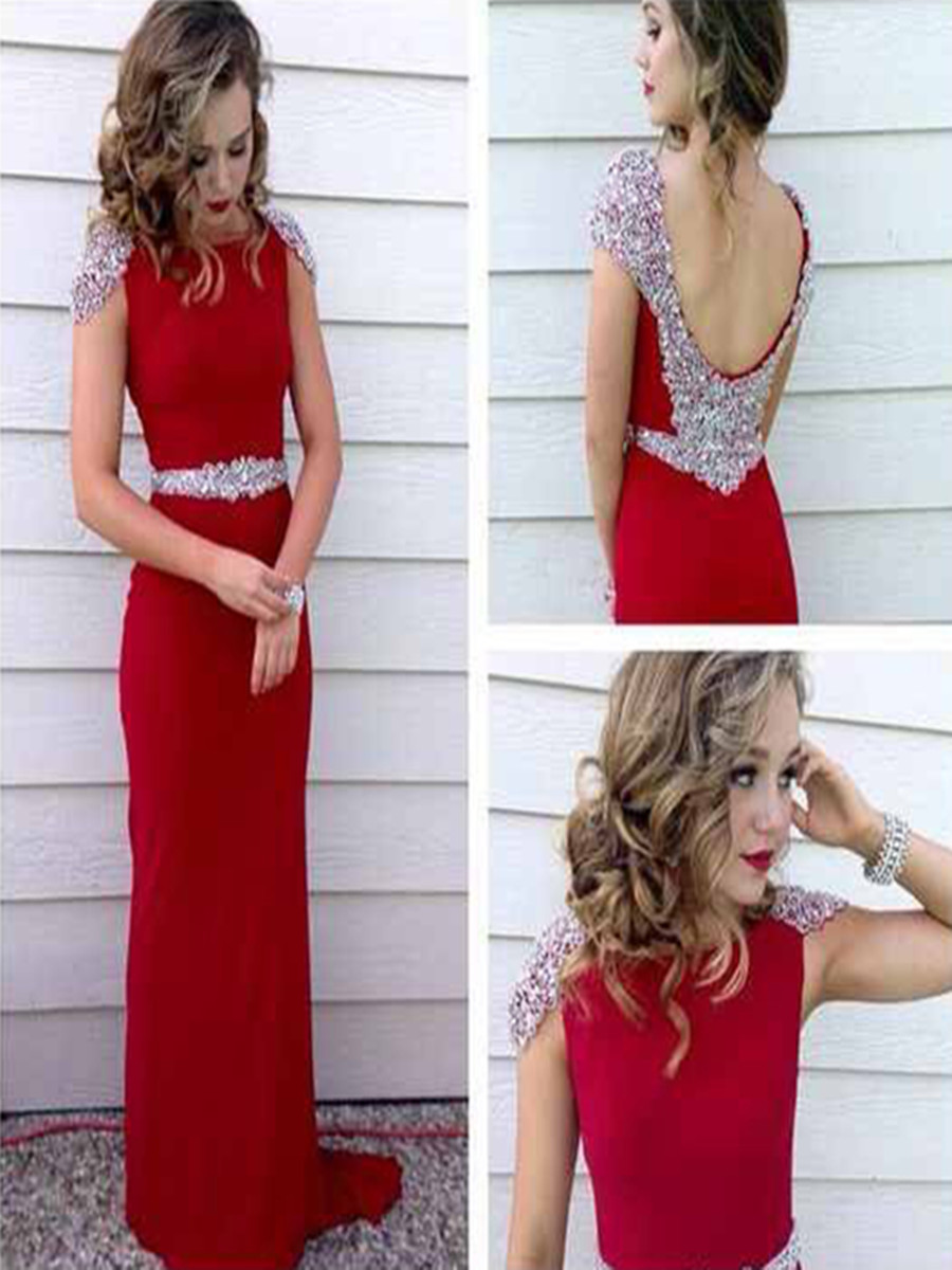 High Quality Charming A Line Round Neck Floor Length Red Beading Long Prom Dress,Backless Red Prom Gowns,Red Evening Dress,Dress For Prom,Formal
