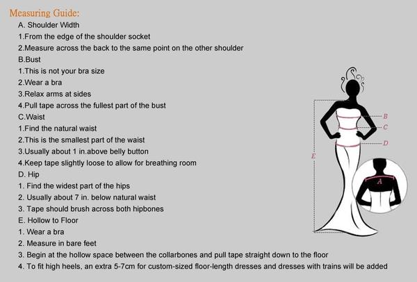 We strongly recommend that you have your measurements taken by a professional before buying any gown online. Please follow the measurement instructions, and measure yourself carefully