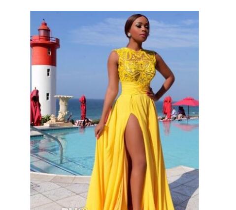 Yellow Chiffon Prom Dress Arabic Cheap Simple High Split Sexy Formal Summer Holidays Wear Evening Party Gown Custom Made Plus Size