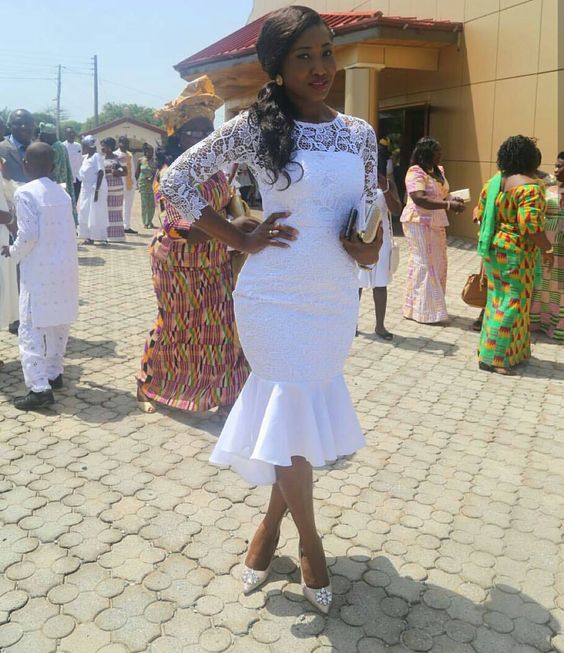 White Mermaid Lace Prom Dresses Scoop Three Quarters Sleeve African Girl Black Girl Evening Formal Gowns