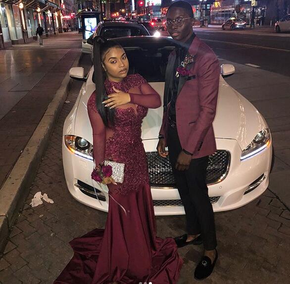 Burgundy Wine Red Satin Prom Dresses Long Sleeve Lace Appliques Plus Size Evening Formal Gowns