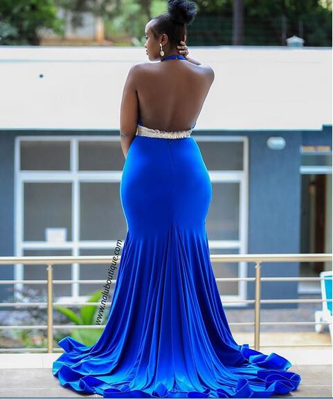 Plus Size Royal Blue Mermaid Prom Dresses Backless African Girl Black Girl Feathers Evening Formal Gowns