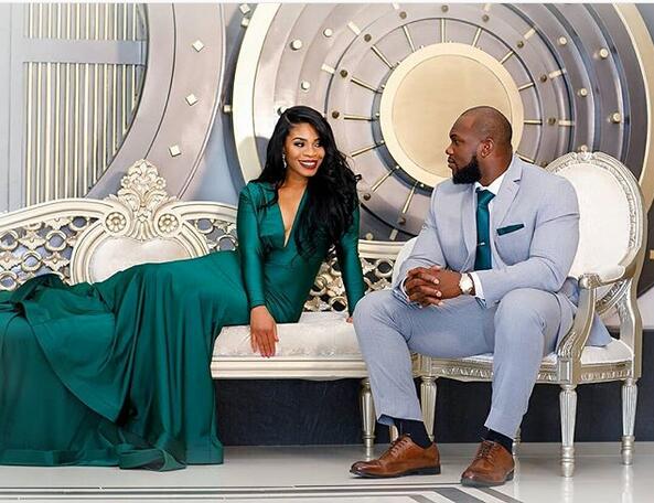 Emerald Green Mermaid Prom Dresses Sexy Deep V Neck Long Sleeve African Girl Black Girl Evening Formal Gowns