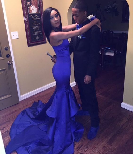 Royal Blue Mermaid Satin Prom Dresses Sexy Sweetheart Tiered Black Girl African Girl Prom Gowns Evening Formal Dresses