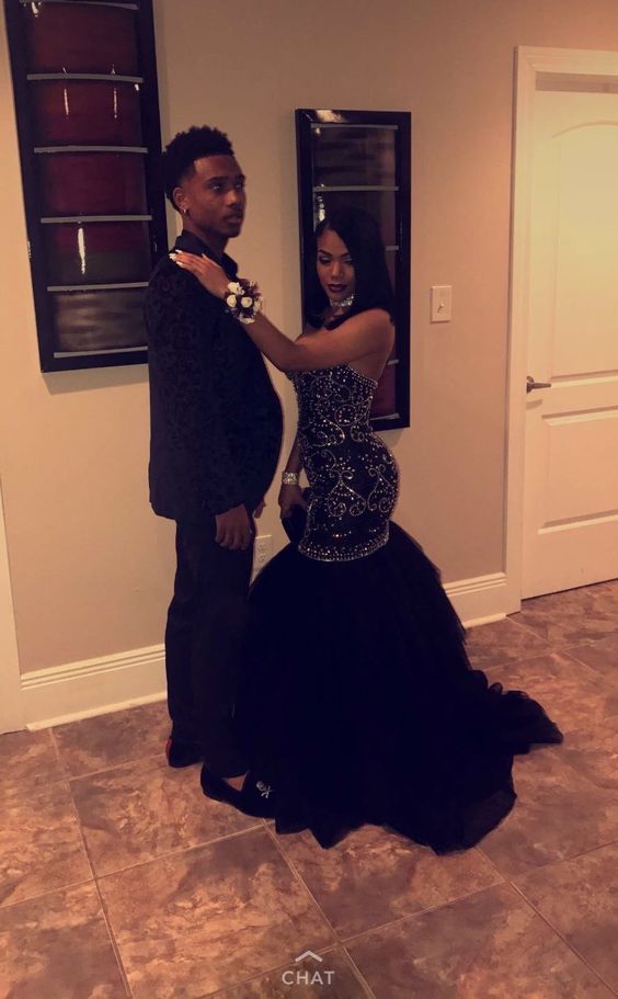 Black Mermaid Tulle Prom Dresses Sweetheart Beading Crystals African Girl Black Girl Evening Formal Gowns