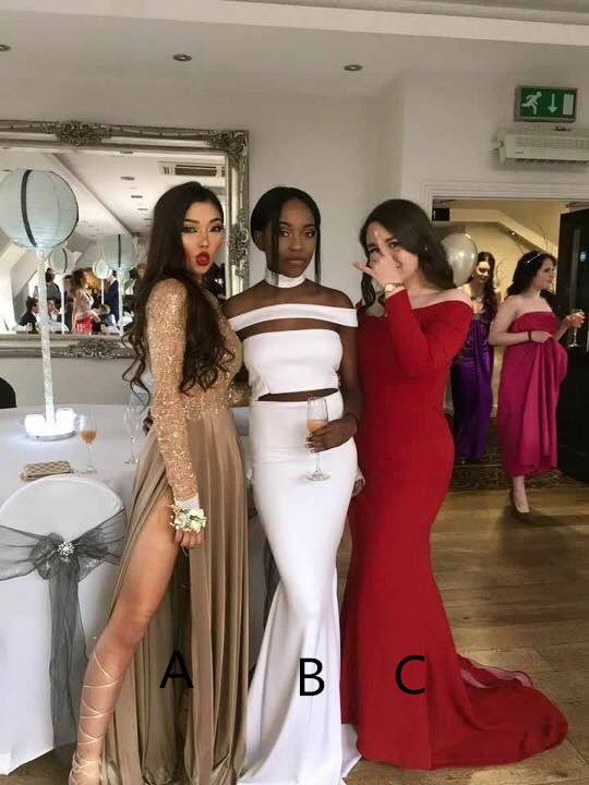 3 Different Style Mermaid Prom Dresses Crew Neck Beading Crystals African Girl Black Girl Evening Formal Gowns