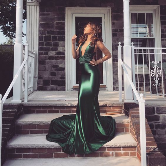 Emreald Green Mermaid Prom Dresses Deep V Neck Dark Green African Girl Black Girl Evening Formal Gowns