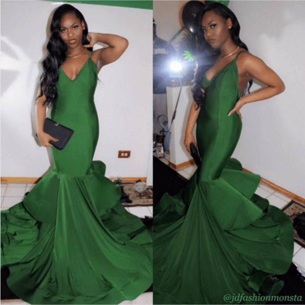 Emreald Green Mermaid Prom Dresses Deep V Neck Dark Green Tiered African Girl Black Girl Evening Formal Gowns