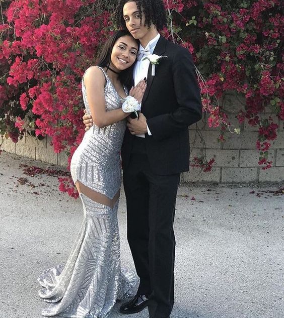 Silver Mermaid Prom Dresses Scoop Sequins Lace African Girl Black Girl Evening Formal Gowns