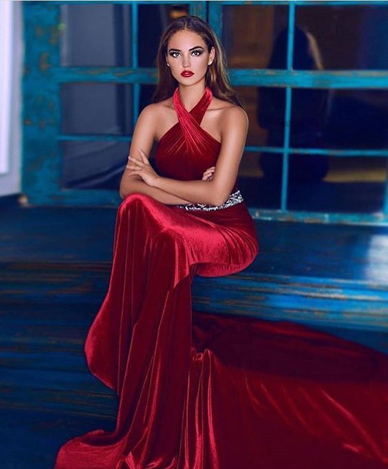 Simple Mermaid WIne Red Burgundy Prom Dresses Halter Beading Evening Formal Gowns