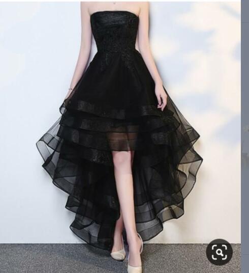 Black Ball Gown Tulle Prom Dresses Strapless Lace Bodice Evening Formal Gowns