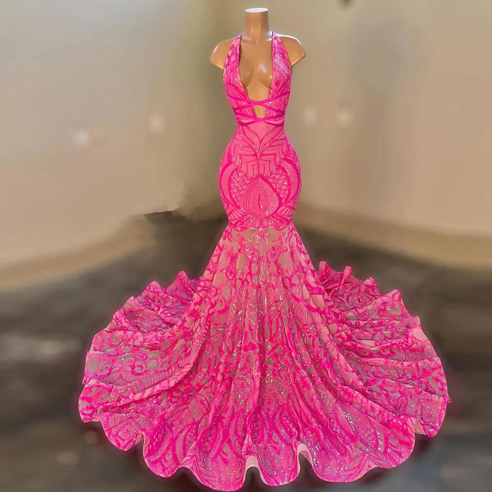 Black Girl Mermaid Prom Dresses V-Neck Sleeveless Sequins Sparkly African Cocktail Birthday Party Gowns Formal Evening Dres