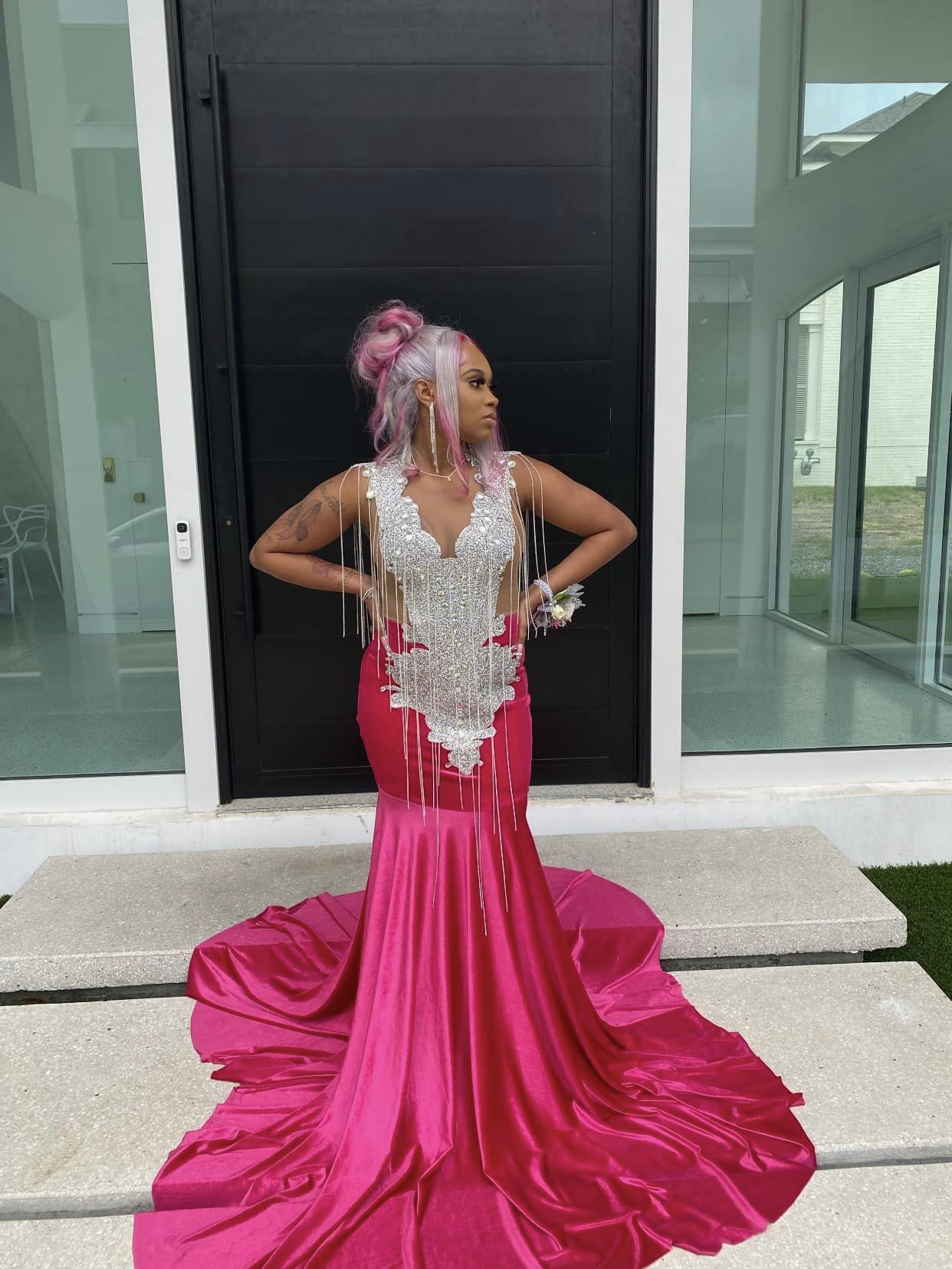 Red Mermaid African Beading Crytals Prom Dress Black Grils Evening Dress