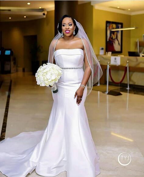 Simple Mermaid Wedding Dresses Strapless Beading Crystals South African Girl Bridal Gowns
