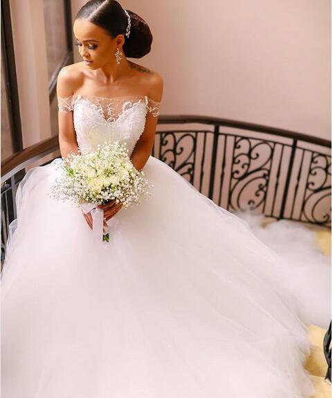 Ball Gown Tulle Wedding Dresses Off the Shoulder PearlsSouth African Girl Bridal Gowns