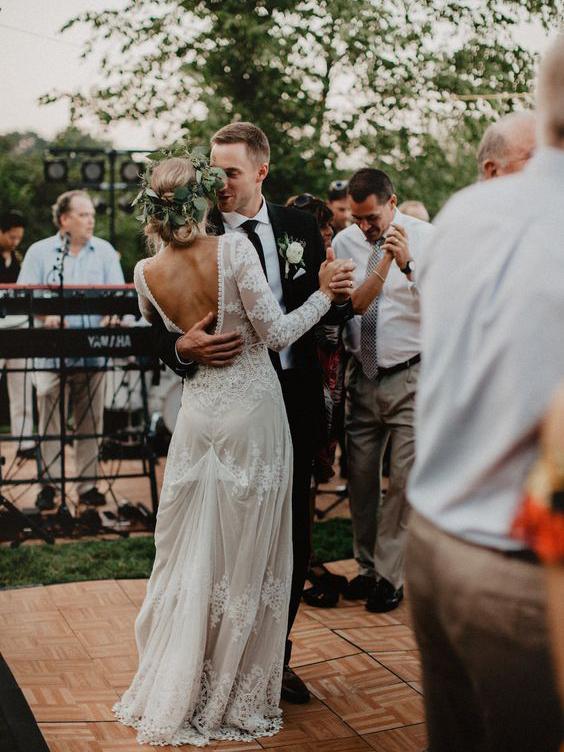 Long Sleeve Ivory Sheath Wedding Dresses Backless Lace Applique Country Wedding Dress