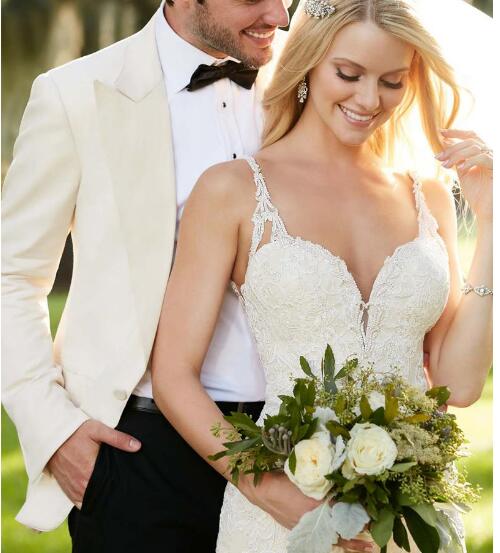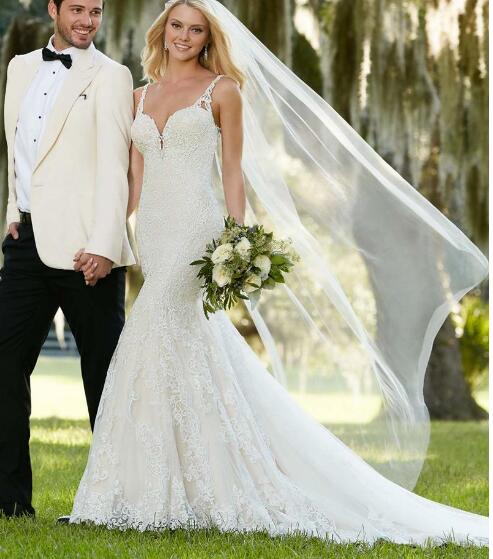 Elegant Tulle Spaghetti Straps Neckline Mermaid Wedding Dresses With Lace Appliques