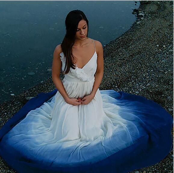 A-Line V-Neck Sleeveless Floor-Length Ombre Chiffon Ruched Wedding Dress