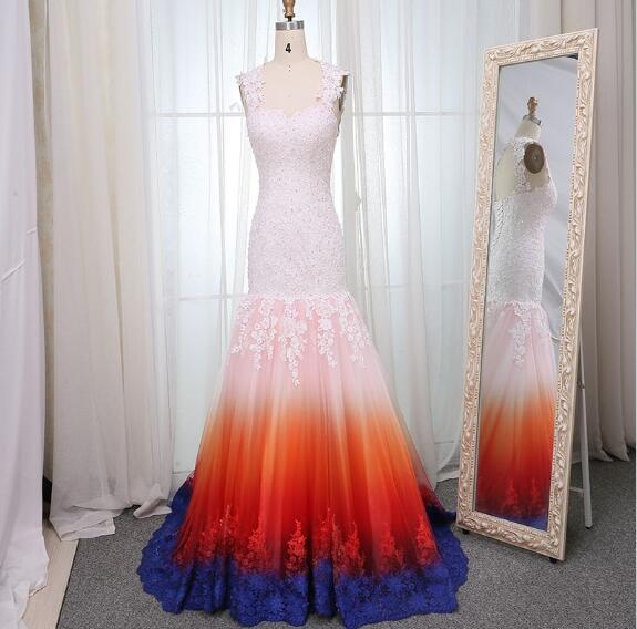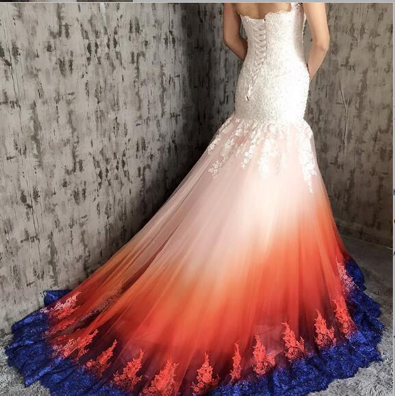 Mermaid Scoop Open Back Sweep Train Ombre Wedding Dress with Appliques Beading