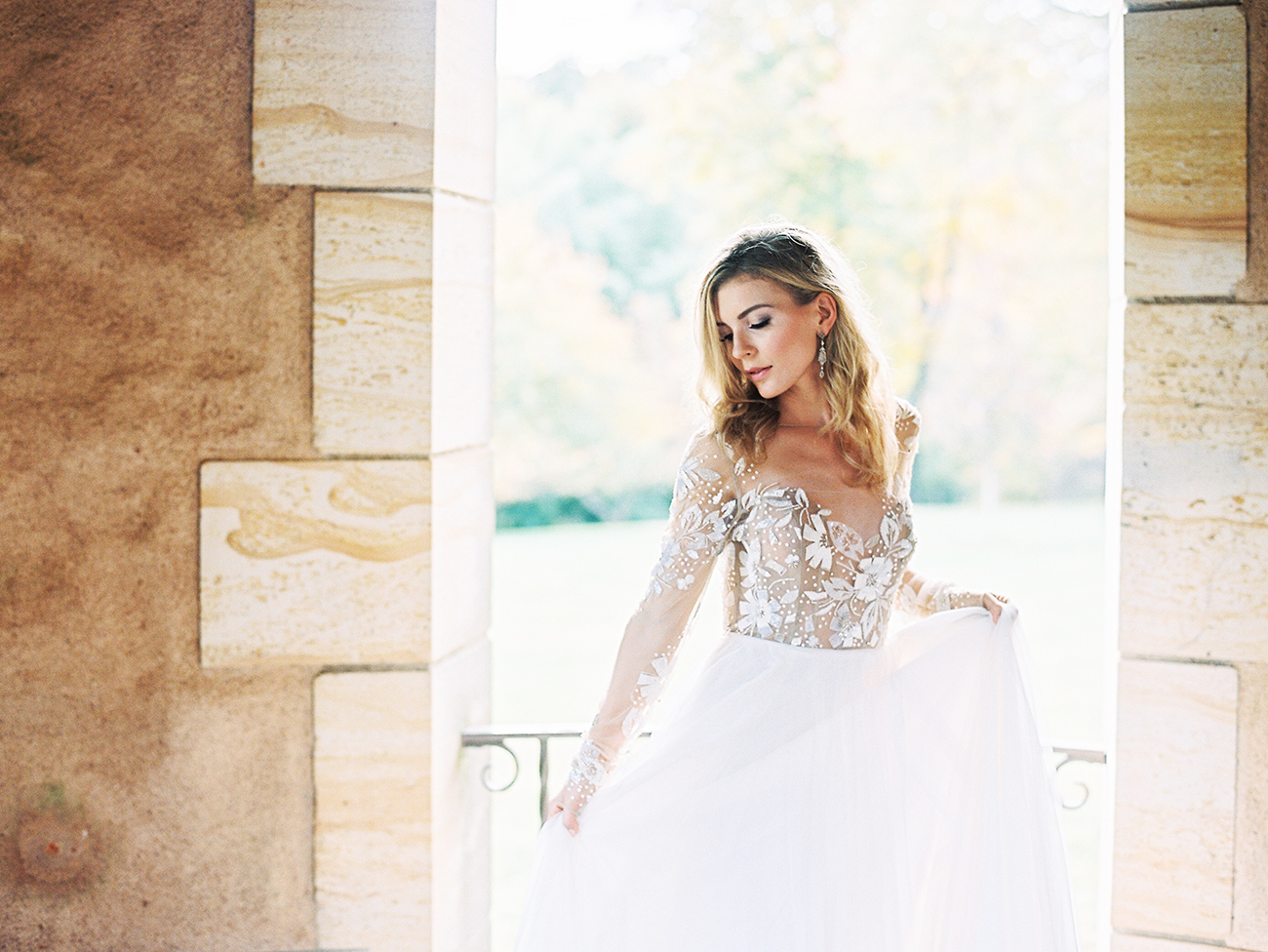 Stunning Ball Gown Tulle Wedding Dresses Sheer Crew Neck Long Sleeve Delicate Lace Bridal Gowns