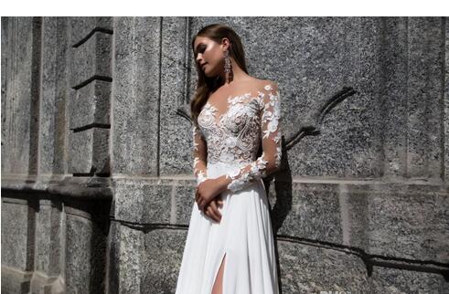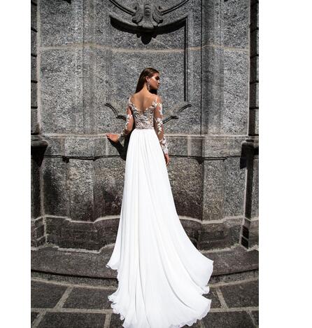 Beach Bohemian A Line Wedding Dresses Lace Sexy High Side Split Lace Applique Chiffon Long Sleeves Bridal Gowns Boho