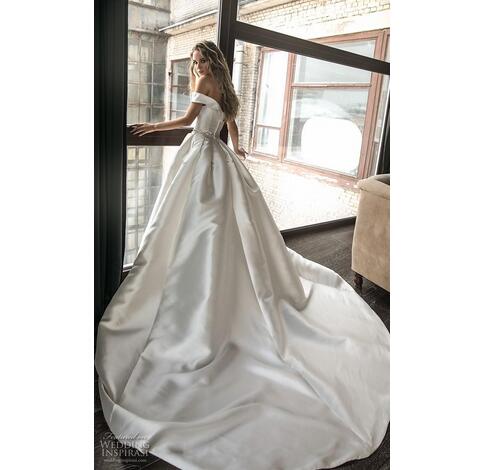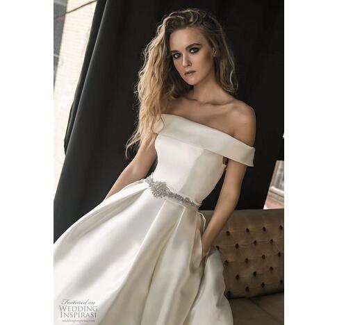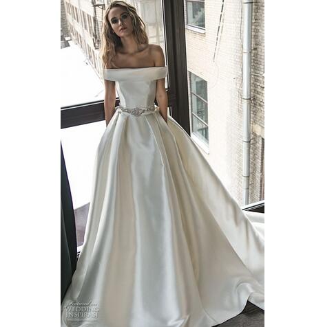 Princess Off Shoulder Satin A Line Wedding Dresses 2019 With Beaded Crystal Sash Custom Made Bridal Wedding Gowns Vestido De Novia