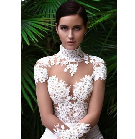 High Neck Slim Long Sleeves Mermaid Wedding Dresses Custom Sheer Formal Bridal Gowns 2019 Cheap Sale Vestidos De Novia Satin Vintage