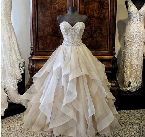 Organza Wedding Dresses Sweetheart Sleeveless Lace Up Floor Length Ball Gown Bridal Dresses Sweet Wedding Gowns
