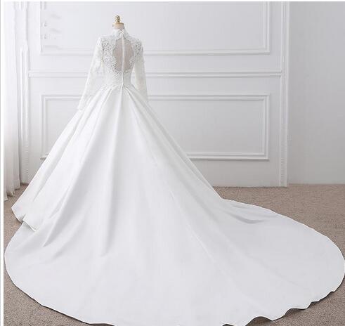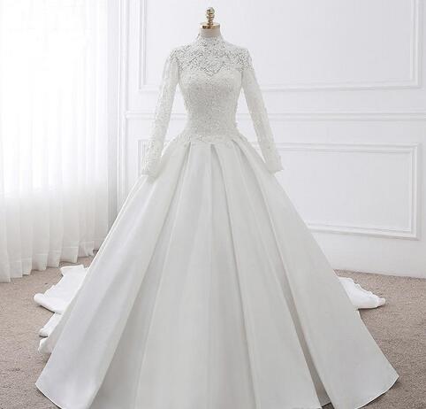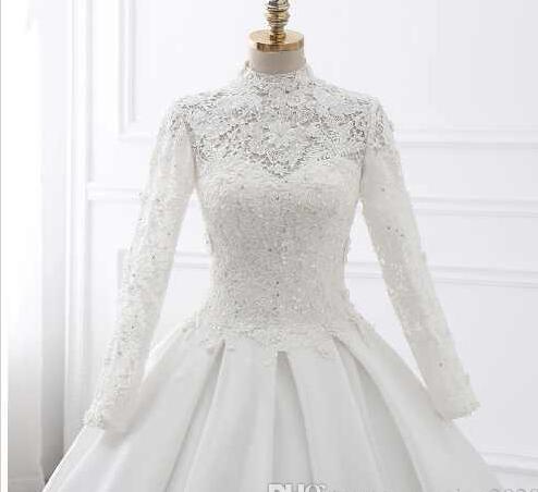 White Lace Wedding Dresses High Neck Long Sleeve With Appliques Beaded Illusion Back With Zipper Bridal Dresses Elegant Wedding Gowns