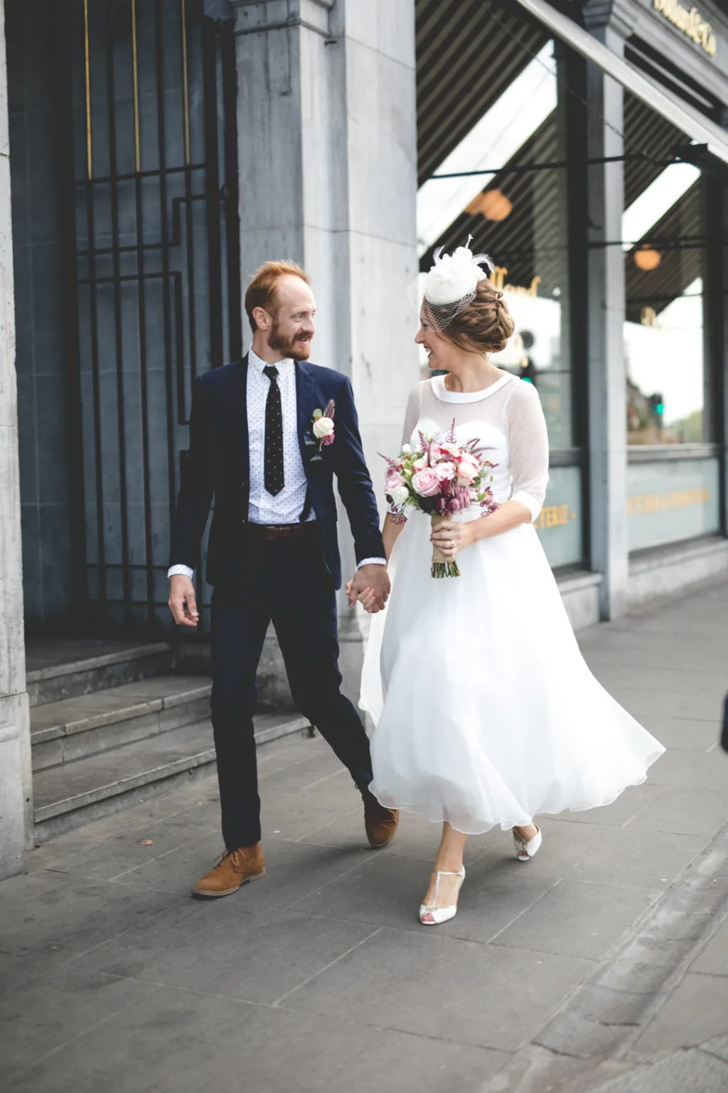 Simple Chiffon Half Sleeve Tea-length Wedding Dress Bridal Gown