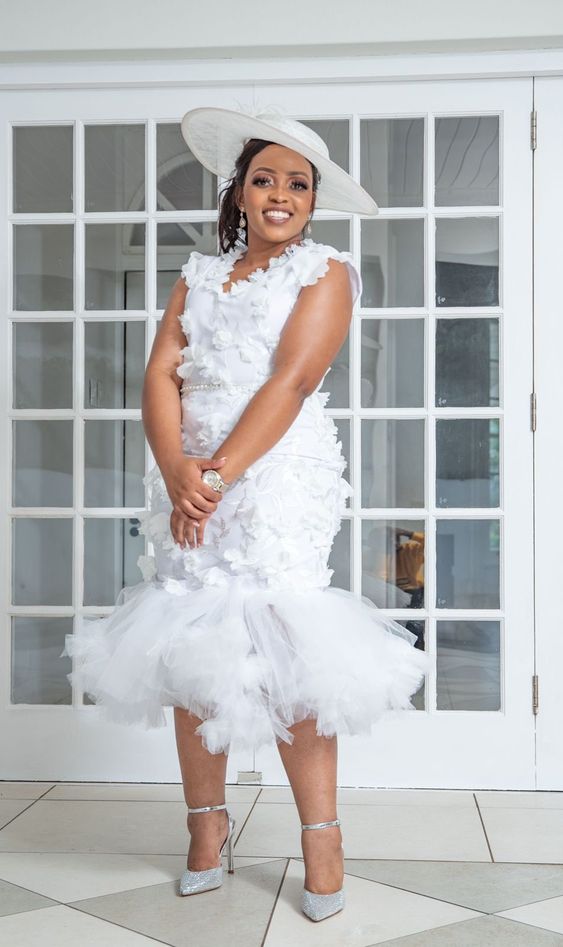 Simple Short Sleeve Tea-length African Wedding Dress Bridal Dress
