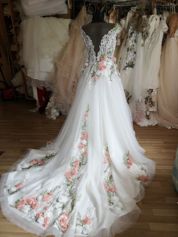 Elegant Appliques Flowers Wedding Dress, Elegant Floral Wedding Gown