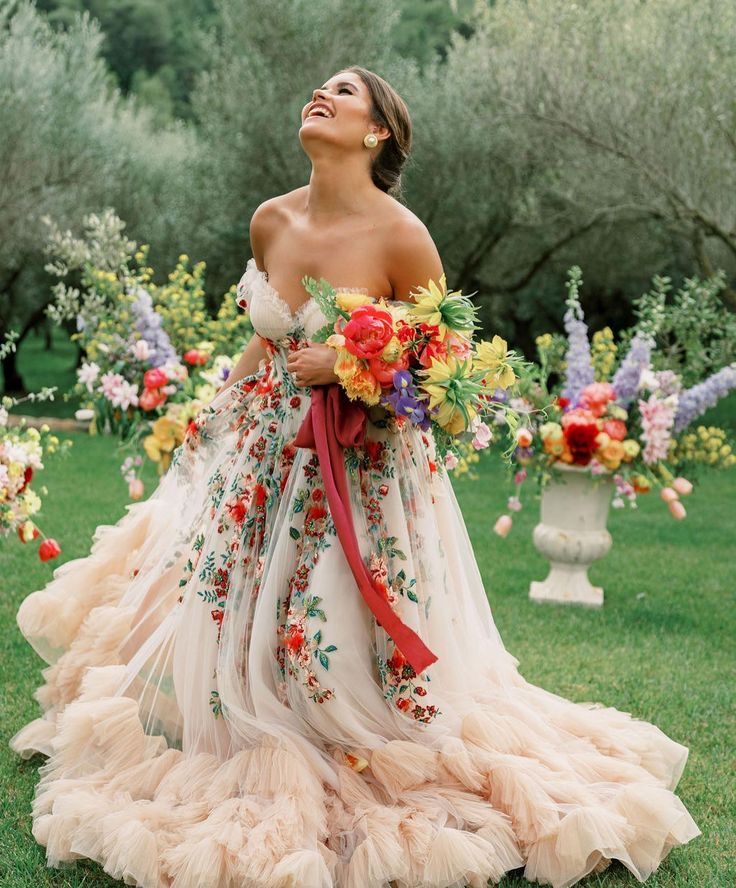 Light Pink Flowers Appliques Flowers Wedding Dress, Floral Wedding Gown Bridal Dress