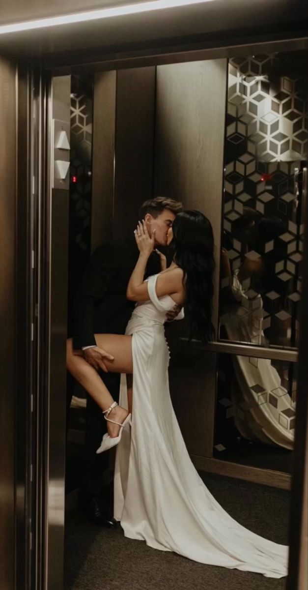 A-line Off Shoulder Wedding Dress, Side Split Wedding Gown Bridal Dress