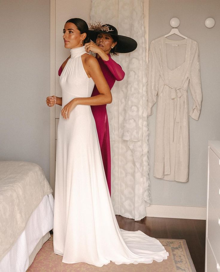Simple Sheath High Neck Wedding Dress, Satin Wedding Gown Bridal Dress