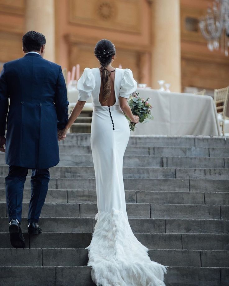 Sexy Mermaid Wedding Dress, Open Back Satin Wedding Gown Bridal Dress