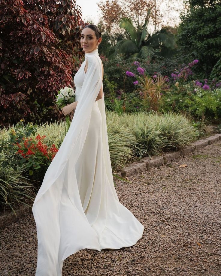 Sexy Sheath Wedding Dress, High Neck Satin with Shawl Wedding Gown Bridal Dress