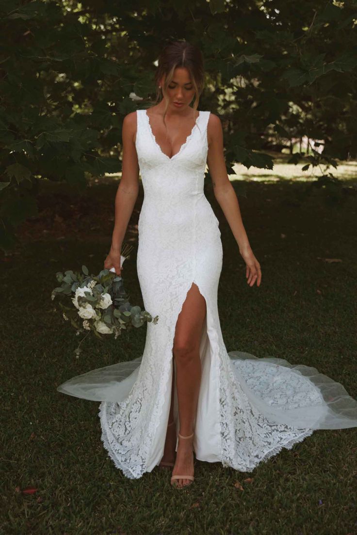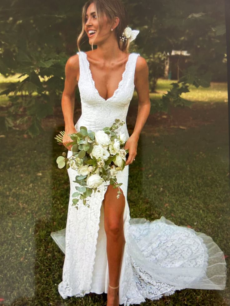 Sexy V-neck Wedding Dress, Tulle Wedding Gown Bridal Dress