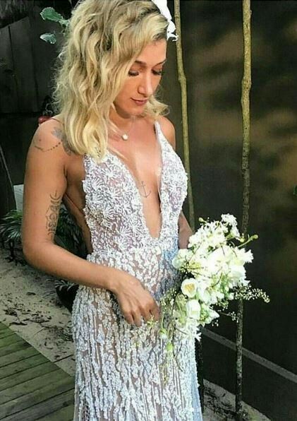 Sexy Luxury Deep V-neck Wedding Dress, Bling Bling Backless Tulle Wedding Gown Bridal Dress