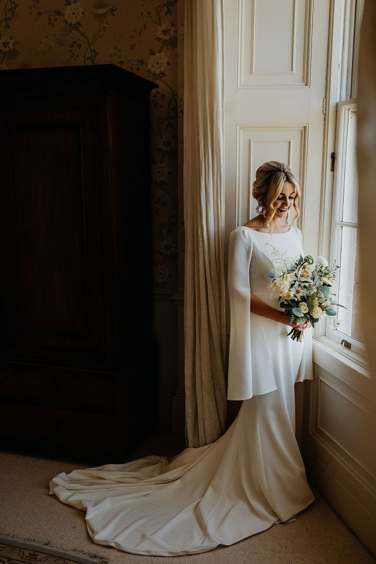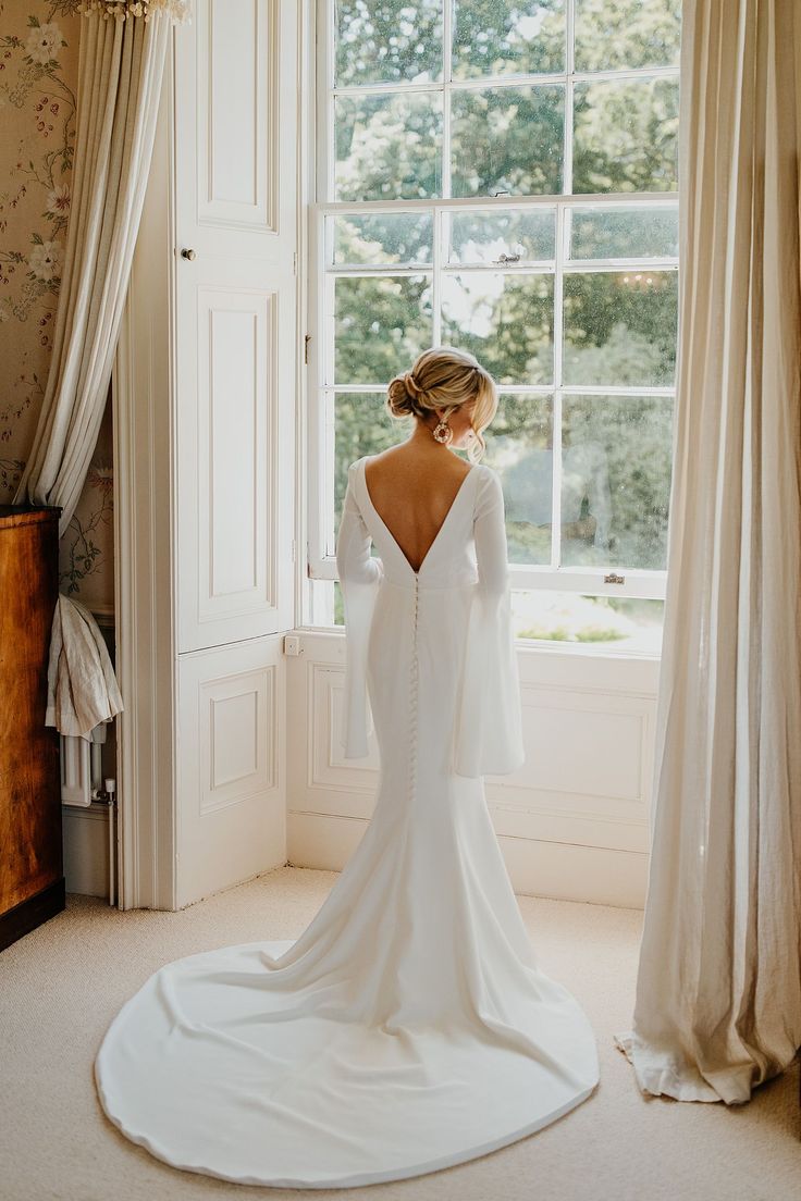 Sheath Cap Sleeves Satin Wedding Dress Bridal Dress Wedding Gown