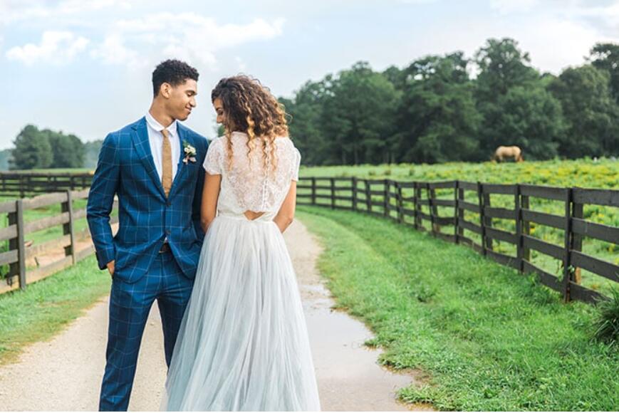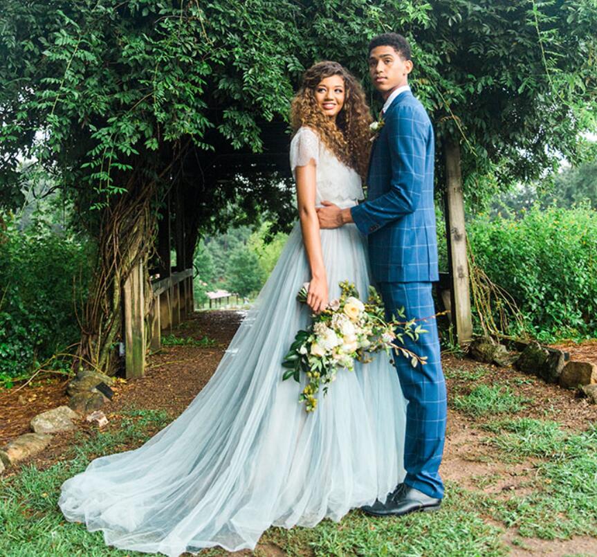 Blue Two Pieces Tulle Bridal Gown Wedding Dress
