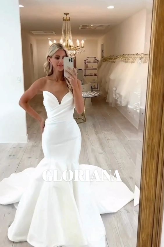 Mermaid Sexy Sweetheart Wedding Gown, Satin Bridal Gown Wedding Dress