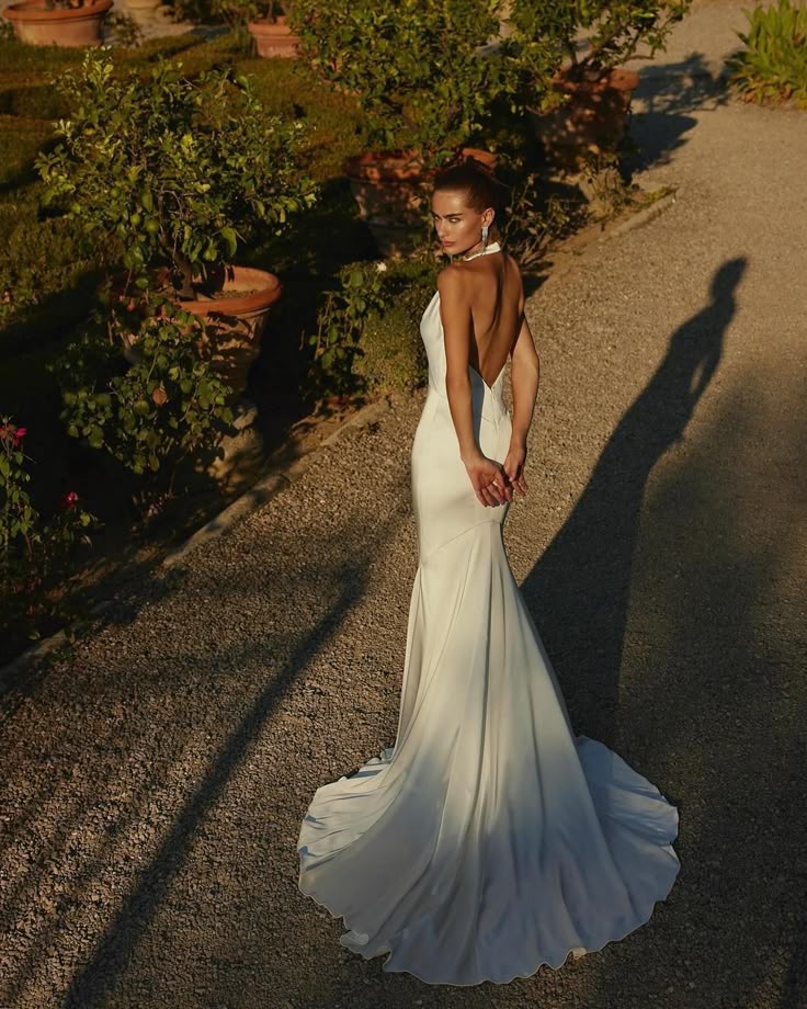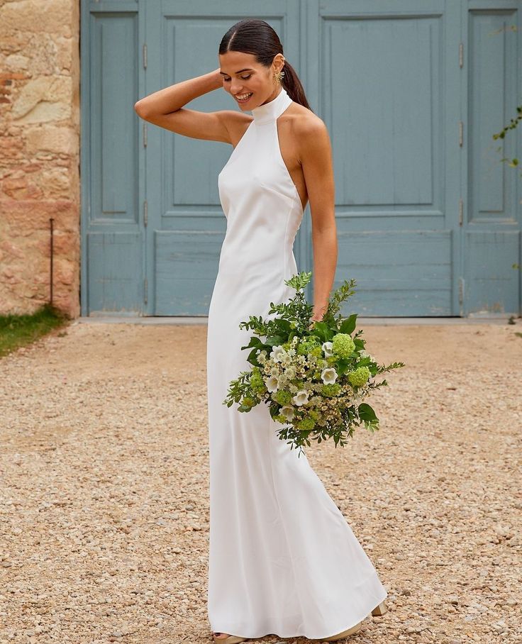 Sexy High Neck Wedding Gown, Backless Satin Bridal Gown Wedding Dress