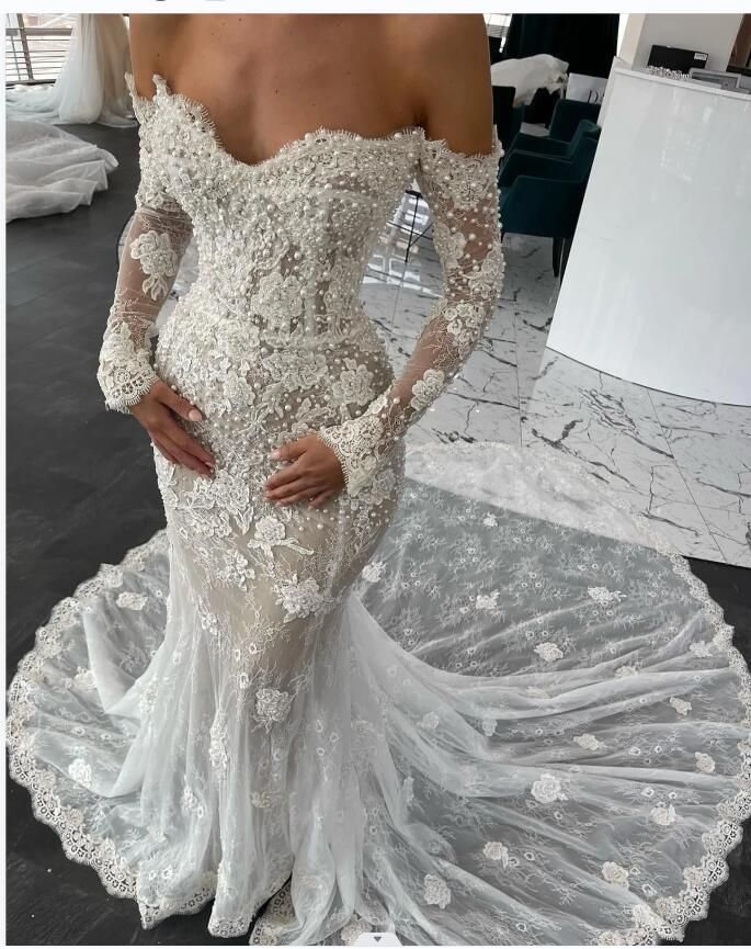 Sexy Mermaid Wedding Gown, Appliques Tulle Lace Bridal Gown Wedding Dress