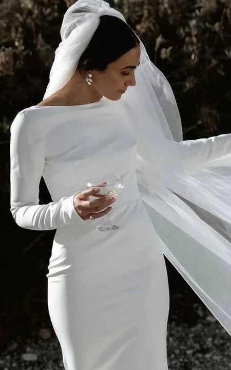 Sheath Wedding Gown, Satin Bridal Gown Wedding Dress