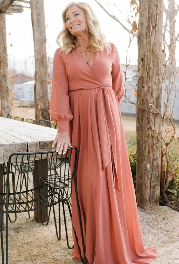 A Line Chiffon Long Sleeve Plus Size Mother of Bride and Groom Dress Satin Evening Dress