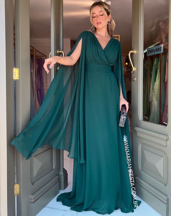 Dark Green Chiffon Mother of Bride and Groom Dress Evening Dress