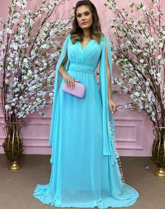 Blue Sheath Chiffon Mother of Bride and Groom Dress Evening Dress
