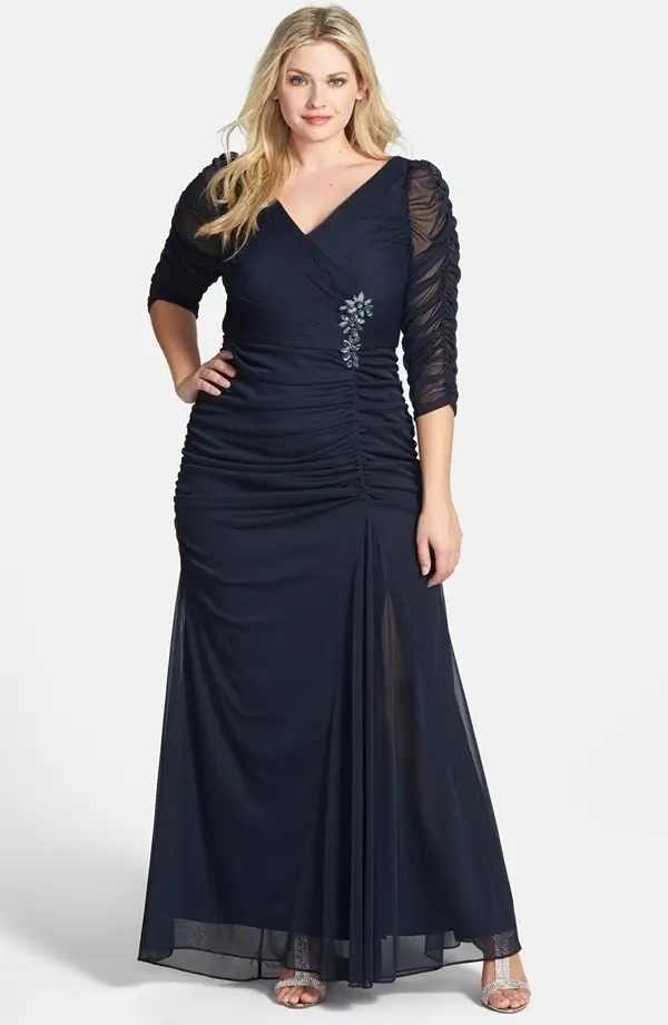 Navy Blue Chiffon Plus Size Mother of Biride/Groom Dress