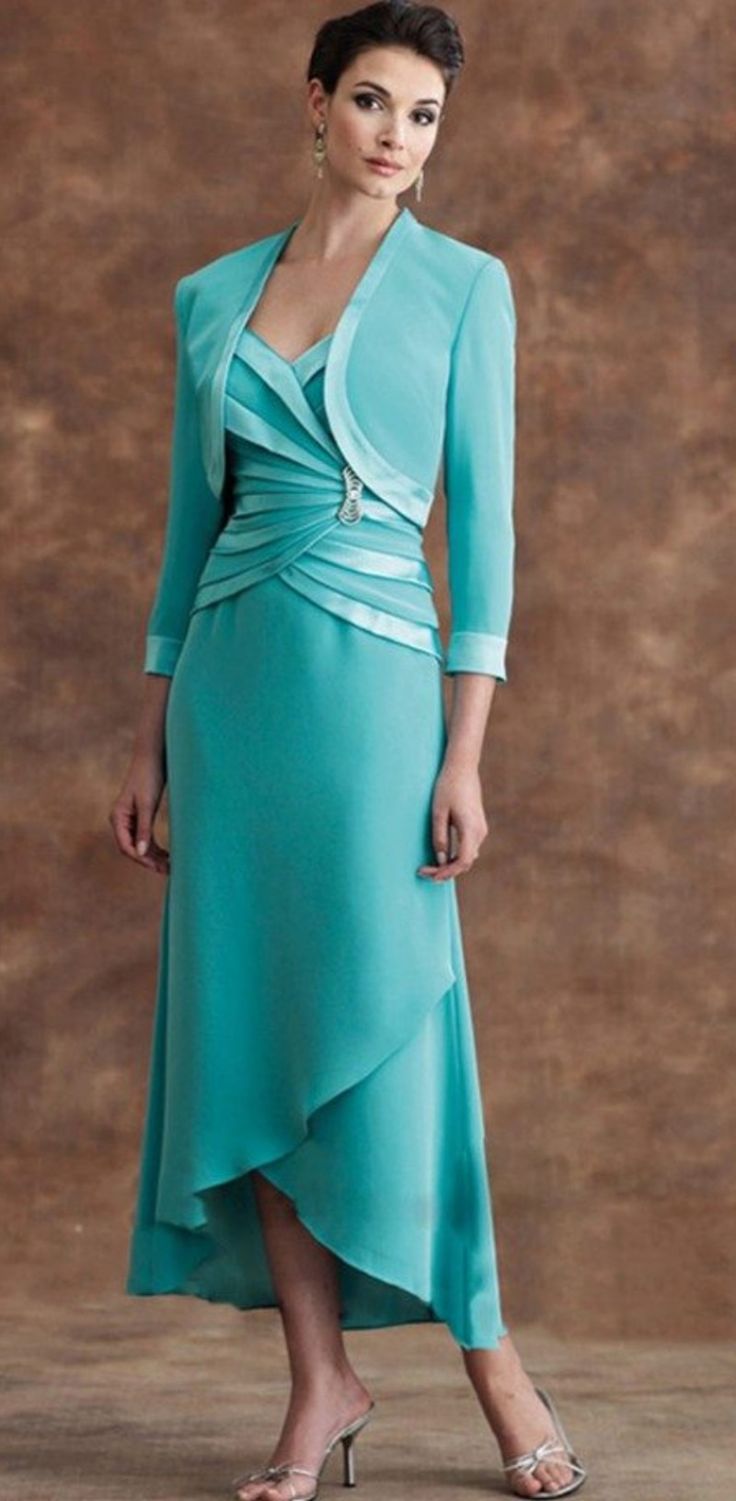 Elegant Blue Sheath with Jacket Mother of the Bride/Groom Dress Evening Formal Dress